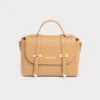 Shopping bag in morbida similpelle impunturata effetto plissè. Chiusura frontale con elemento metallico. Dettaglio di m…