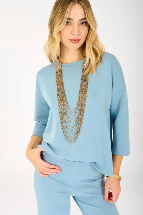 Maglia in modal leggero con girocollo, manica 3/4 e linea morbida. Perfetta per un look minimal e confortevole
